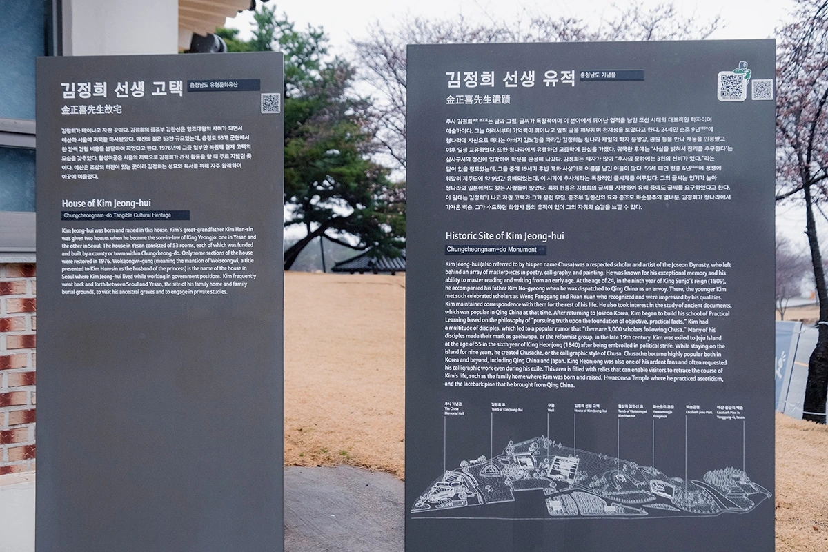 수선화를 중심으로 한 같은 전국구 인기 봄꽃여행지이긴 하지만 예산 추사고택이 유기방가옥이나 지리산치즈랜드와 다른 건 추사 김정희 선생이라는 위대한 예술가이자 문인, 실학자의 삶의 향기가 그 안에 녹아 있다는 것. 눈을 황홀하게 만드는 수선화 물결을 따라 한옥 고택과 그 주변을 한 바퀴 돌다 보면 자연스레 추사의 발자취를 마주치게 되기 때문인데, '위대한'이라는 수식어가 뒷받침될 정도의 예술가의 삶이라는 건 꽃 향기 이상의 강렬한 향기를 내뿜는 만큼 다른 수선화 여행명소들과는 무게나 격이 다를 수밖에 없다.