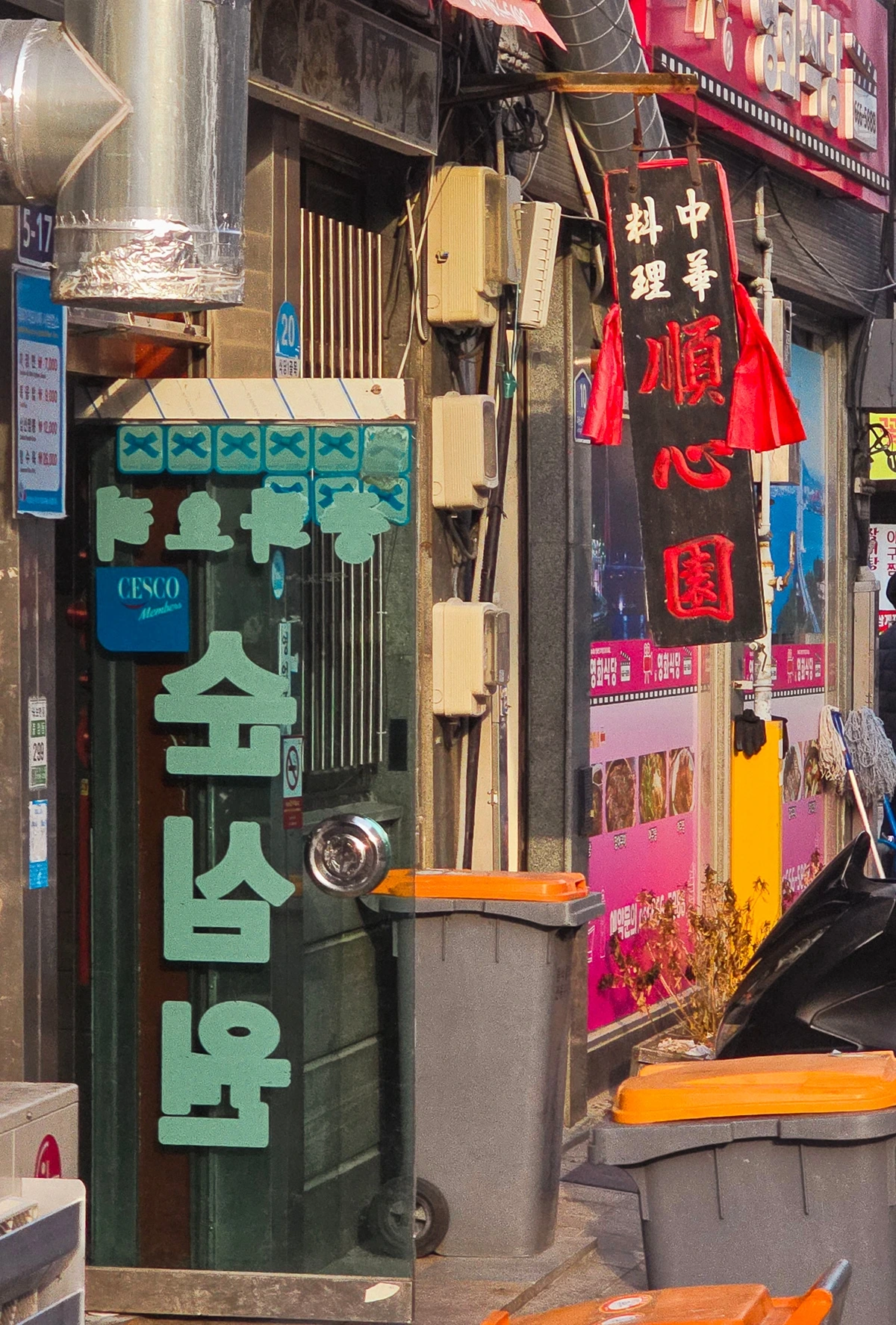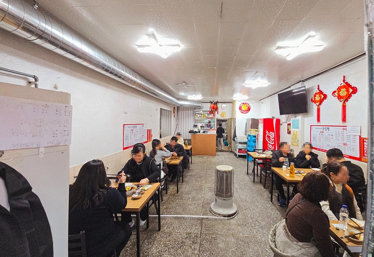 생각보다 수월하게 여수 순심원 테이블 하나를 꿰차고 앉아 이 집 시그니처메뉴인 해물철판짜장을 주문한 뒤 음식점 안을 한 바퀴 휘 둘러보다 보니 이 집엔 내 눈길을 사로잡는 특별한 게 두 가지 있었다. 그 하나는 2시간 넘게 줄을 서야 할 정도로 잘 나가는 전국구 맛집임에도 불구하고 테이블 구성이 참 단촐하다는 거였다. 중간을 휑하게 비워둔 채 딸랑 테이블 6개를 배치한 게 전부였는데, 앞뒤 테이블끼리 거리도 충분한 데다 옆테이블과는 아예 멀찌감치 떨어져 있어 여느 맛집들과는 분위기가 많이 다른 느낌.