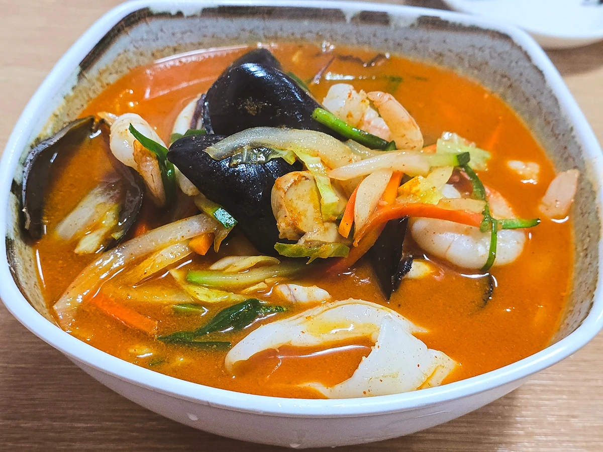 여기서 더 좋았던 건 해물철판짜장 안팎을 빽빽하게 채우고 있는 새우와 오징어 등 해물들의 '묵직한' 존재감이었다. 일반 중국음식점에 가서 해물짜장이니 해물짬뽕을 시키면 면이나 국물을 헤집고 또 헤집어야 쥐꼬랑지만한 해물 몇 조각이 발견되는 경우가 다반사인데, 여수 순심원의 경우 정말 아낌없이 해물을 때려넣었다는 느낌이 들 만큼 그 존재감이 남달랐다. 정말 오랜만에 해물짜장이란 이름이 정말 잘 어울리는 해물짜장을 만난 느낌.