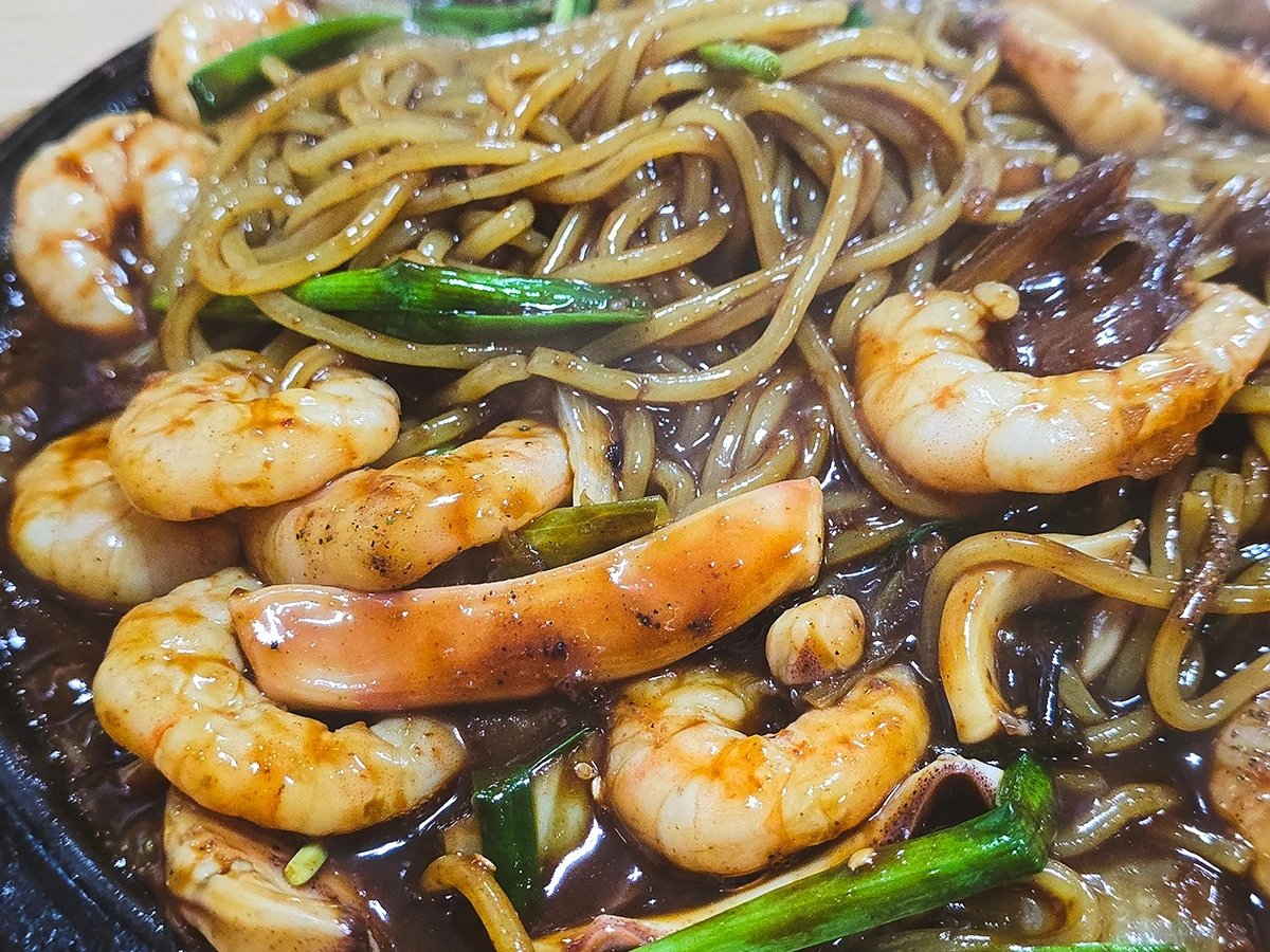 가장 중요한 맛은 아주 매우 많이 만족스러웠다. 내 경우 최애 음식 순위를 매겼을 때 세 손가락 안에 꼽을 만큼 좋아하는 음식이 짜장면인 터라 여기저기 난다긴다 하는 맛집들을 많이 다녀봐서 어지간해선 잘 감탄사도 안 나오는 편인데, 여수 순심원 해물철판짜장은 한 젓가락 입 안으로 밀어넣는 순간 '이 맛이닷!' 싶은 느낌이 머리 속을 전류처럼 짜릿하게 관통하면서 누가 뺏어먹을 일도 없건만 허겁지겁 계속 젓가락질을 하게 만들었다.