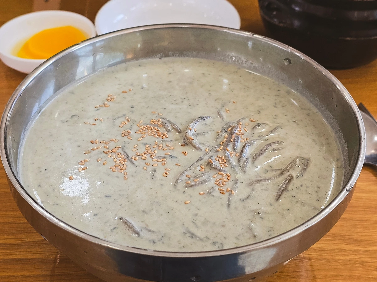 춘원회관의 시그니처메뉴는 앞서 콩국수 맛집이라 소개했던 바와 같이 '속청태'를 원료로 만든 시원하면서도 걸걸한 국물맛이 일품인 콩국수. 이 대목에서 '속청태가 뭐짓?' 하고 궁금해하는 분들이 많을 텐데, 이는 껍질은 검고 속은 파란 국내산 검정콩 서리태를 의미하는 것으로 춘원회관 측이 다른 콩국수들과의 차별화된 이미지를 위해 상표등록까지 마친 이름이다.