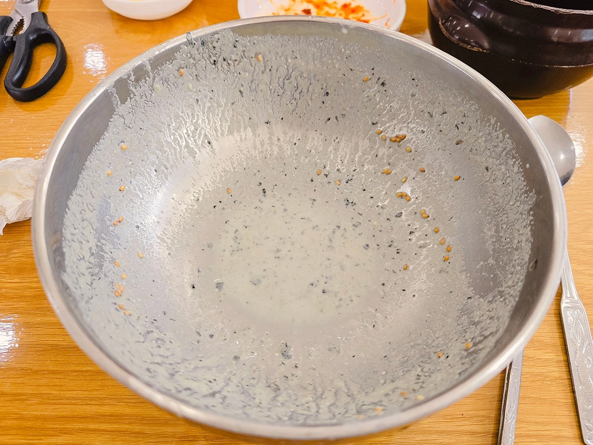 그 이유는 아마도 다른 곳과는 콩국물 맛이라든가 농밀한 밀도 등이 달라서 그런 게 아닌가 싶다. 여기저기 콩국수 잘하는 집들을 꽤 여러 곳 다녀봤지만 대다수의 콩국수집에선 아무리 노력해도 그 국물까지는 도저히 완뚝을 할 수가 없었던 반면, 춘원회관 콩국수의 경우 굳이 완뚝하려 노력한 적이 없음에도 불구하고 먹다 보면 마지막 국물 한 방울까지 다 흡입을 하게 되는 마법같은 일이 벌어지더라는 거다. 그래놓고는 또 너무 배가 부르다며 살짝 후회를 하곤 한다는 건 안 비밀이다.