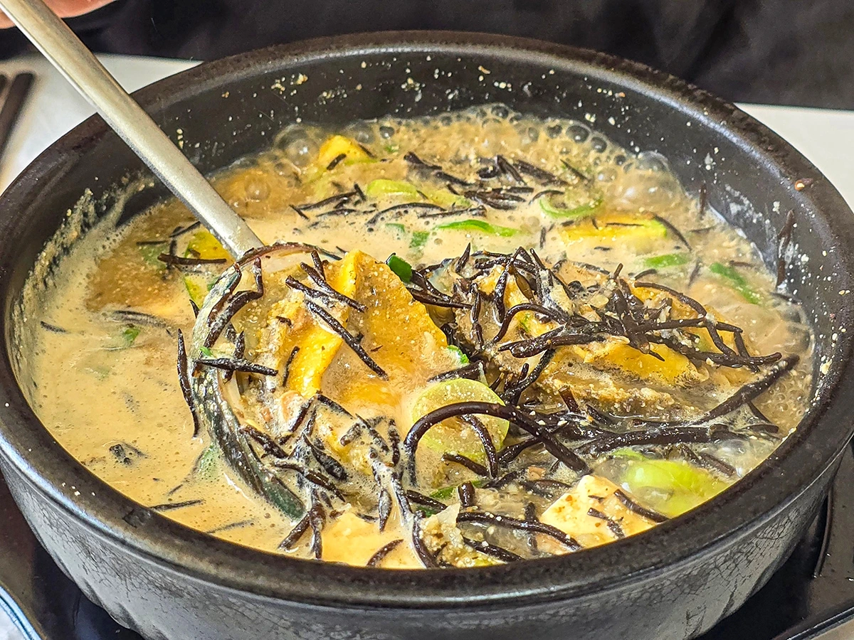각설하고, 그 다소 호들갑스런 중년여성의 추천을 뒤로 한 채 그 길로 음식점에 들어가 자리를 잡고앉아 우리가 주문한 음식은 이 집 시그니처메뉴로 알려진 해초전복비빔밥과 전복톳된장뚝배기. 완도 대표 특산물이라고 해도 좋을 정도로 이 지역엔 전복을 재료로 하는 음식들이 유난히 많은데, 청운수산식당 역시 달랑 3개 있는 메뉴 가운데 무려 2개가 전복을 주재료로 한 음식이었을 정도. 뜬금없는 비유긴 하지만 만일 국회였다면 개헌도 가능한 수준의 압도적인 무게요 비중이다.