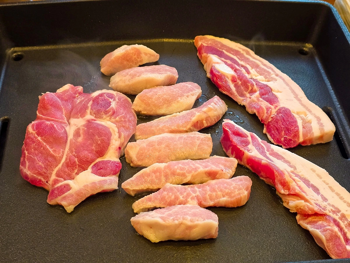 무슨 특별한 양념을 한 것도 아니구 생고기가 다 거기서 거기지 뭐 얼마나 차이가 난다구 그렇게 얘기하느냐고 의아해하는 분들도 있을 거다. 나 역시도 직접 먹어보지 않았다면 똑같이 의아해했을 거다. 하지만 직접 먹어본 결과, 고기를 별로 좋아하지 않아서 고기맛도 잘 알지 못하는 내 막입으로도 다른 집에서 먹어본 고기들과는 확연한 차이가 느껴질 정도로 확실히 달랐다.