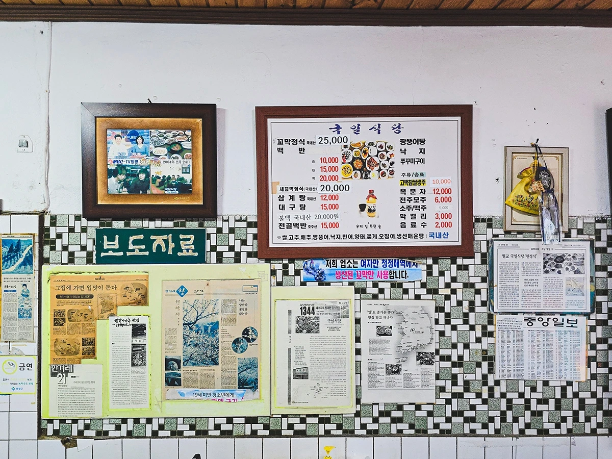 꼬막으로 유명한 고장 전남 보성 벌교 대표 맛집인 국일식당은 지난 1952년 개업해 70년 넘게 그 자리를 지켜오고 있는 꼬막정식 노포 맛집이다. 2012년 농림부와 한식재단이 함께 선정한 <한국인이 사랑하는 오래된 한식당 100선> 목록에 당당히 이름을 올린 전설의 맛집이기도 하다.