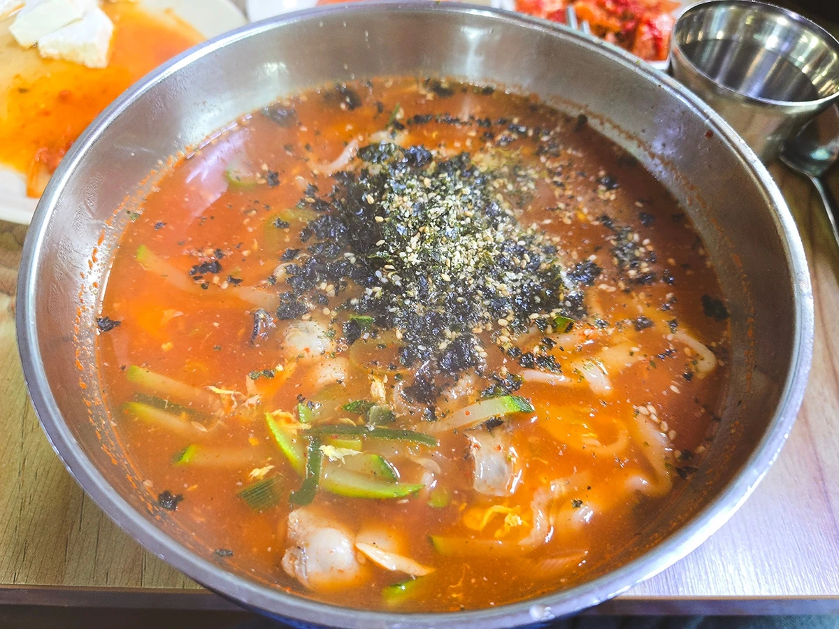 보령 남포집 시그니처 메뉴인 얼큰 칼국수는 이름 그대로 얼큰하면서도 시원한 국물맛이 특히 좋은 말 그대로 시그니처 메뉴다. 이 집을 찾는 손님들 중 열에 일고여덟은 이걸 먹기 위해 찾아오는 손님들일 정도로 인기가 좋다.