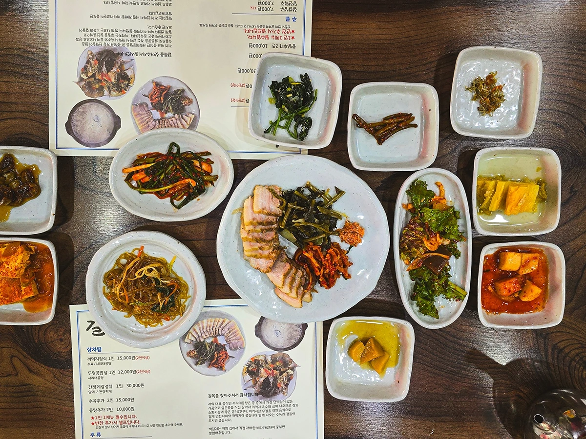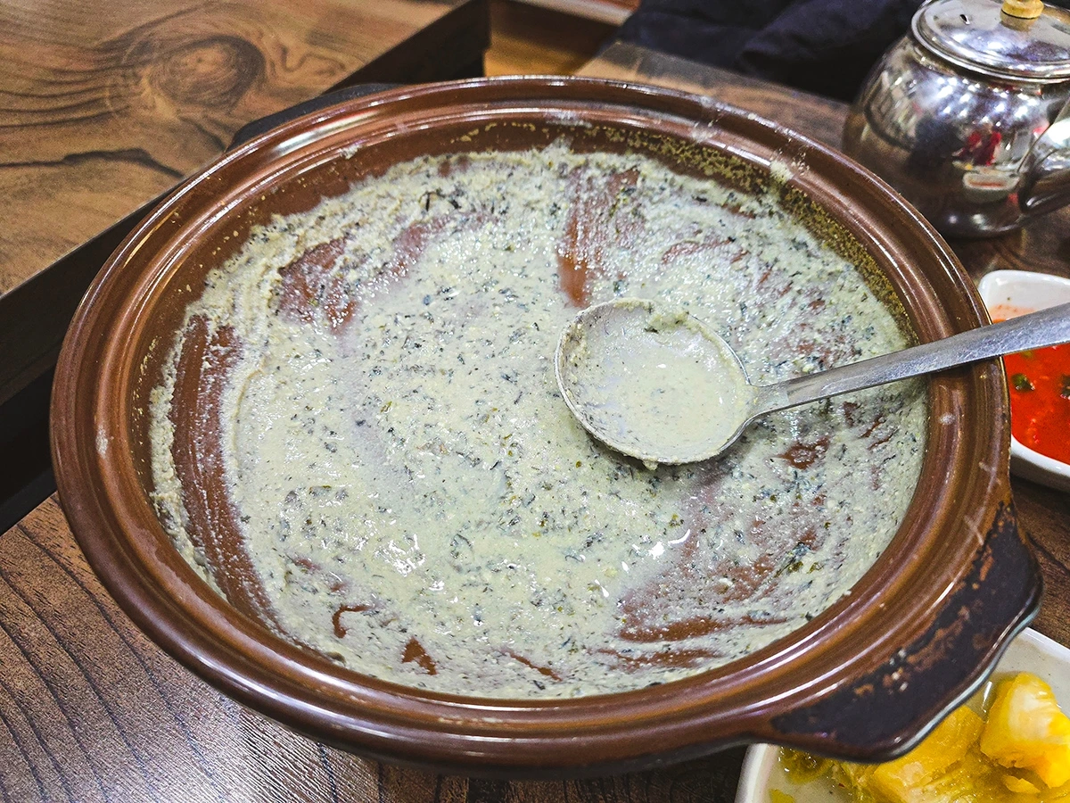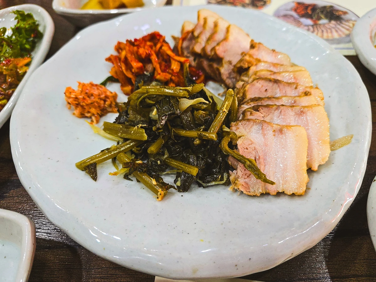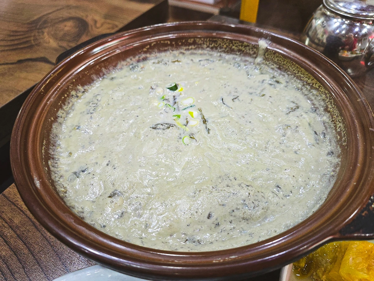 거기에 시래기 특유의 부드러운 식감과 아낌없이 듬뿍 넣은 들깨 가루의 고소함이 더해져 깊고 부드러운 데다가 고소하기까지 한 삼단콤보 맛 공격이 입안을 강타하고, 거기에 한방을 더 가미해 삶아냈다는 수육까지 더해지다 보니 먹다 보면 밥이 보약이라는 말이 절로 실감될 만큼 건강식 그 자체라는 느낌이 든다.