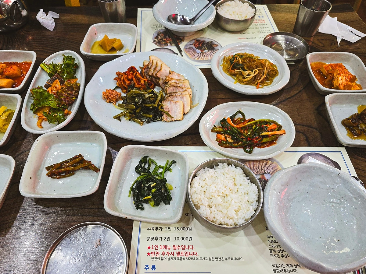 음식물 쓰레기가 문제시 될만큼 백반 하나만 시켜도 뻑적지근하게 차려내는 전라도 밥상에 익숙한 내 주변환경 때문인지도 모르겠는데, 따라서 본인 밥양이 좀 많은 편이라 생각되는 분들은 처음 주문할 때 수육 또는 서리태콩탕을 추가해서 주문하는 걸 추천한다. 먹다가 흐름이 끊기는 걸 싫어하는 분들이라면 이건 선택이 아니라 필수옵션.