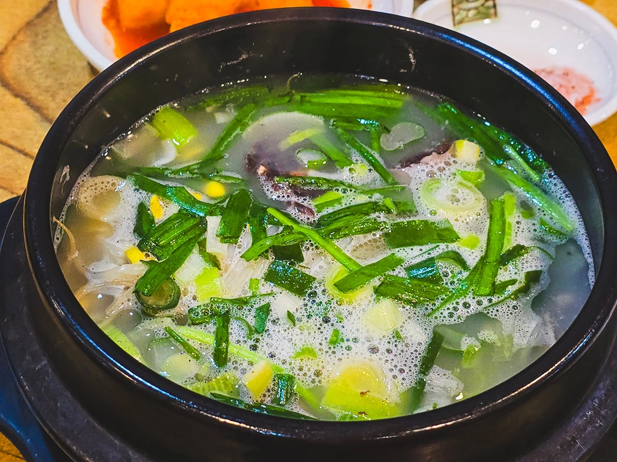 국물은 취향에 따라 다대기(우리말로는 다진 양념인데 습관의 힘인지 이게 잘 느낌이 와닿질 않는다)와 들깨가루, 후춧가루 등을 더한 다음 밥을 말아서 묵은지 또는 깍두기를 곁들여 먹으면 꿀조합을 이룬다.