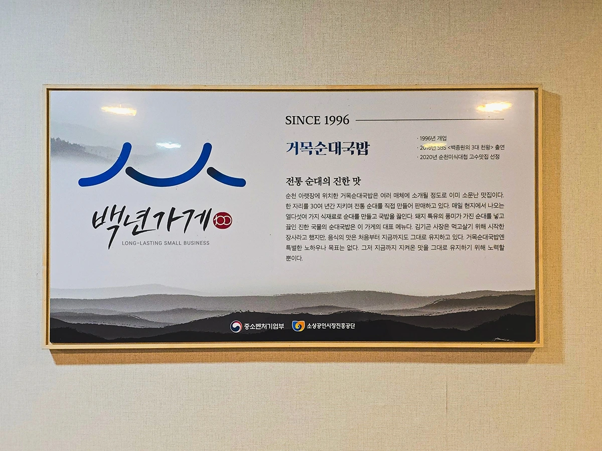 사실 백종원 3대천왕 방송 소개가 아니었더라도 이곳 거목순대국밥은 중소벤처기업부가 인정하는 백년가게 30년 노포 맛집인데다가 맛의 고장 전라도 순천 주최 2020 순천미식대첩에서 최우수상을 수상하는 등 이 지역에선 그 실력을 대내외적으로 공인받고 있는 찐맛집이다. 백종원은 차치하고서라도 한번 찾아가 맛을 볼 이유는 차고도 넘치는 찐맛집이라는 얘기되시겠다.