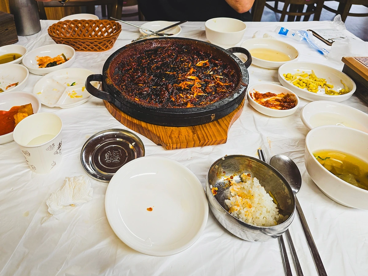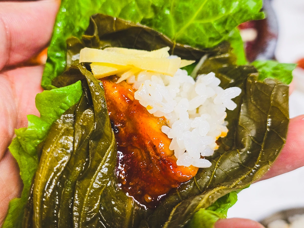 내 경우 궁금증이 일어 이 3가지 방법을 다 시험해 봤고, 거기 더해 밥까지 얹어 먹어봤는데, 그 결과 쌈을 싸먹든 깻잎장아찌를 싸먹든 더덕을 빼고 먹든 간에 다 맛있었다. 메인 디시인 고추장장어구이가 원체 맛있어 놓으니 사실 상추 깻잎장아찌 다 뺀채 그냥 장어만 먹어도 맛 있었다는 건 절대, 네버 안 비밀이다.