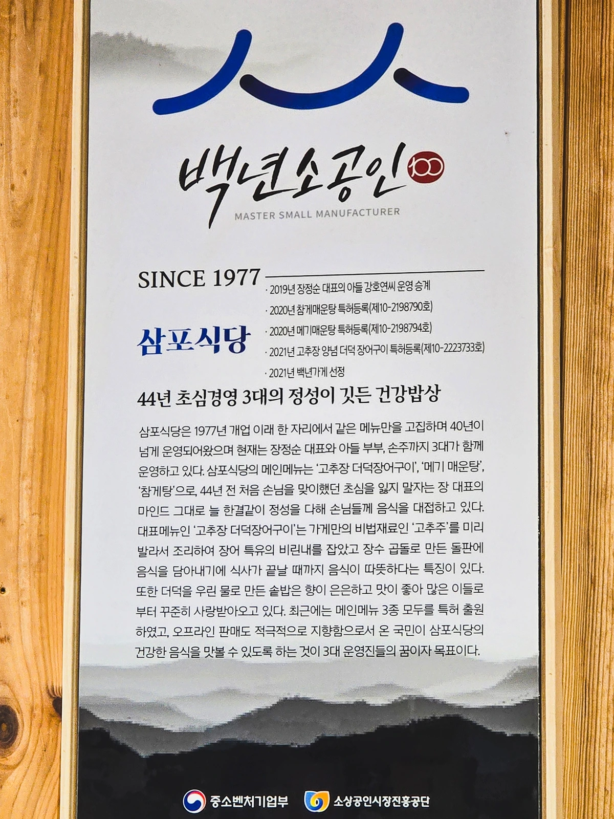 고추장더덕장어구이 60년 노포 한정식 맛집 남원 삼포가든은 매일 오전 9시부터 저녁 9시까지 문을 연다. 남원에서 운봉 가는 길 한적한 시골동네에 위치하고 있다 보니 시골정서가 깃들어서 그런가 따로 브레이크 타임은 없는 듯하다.