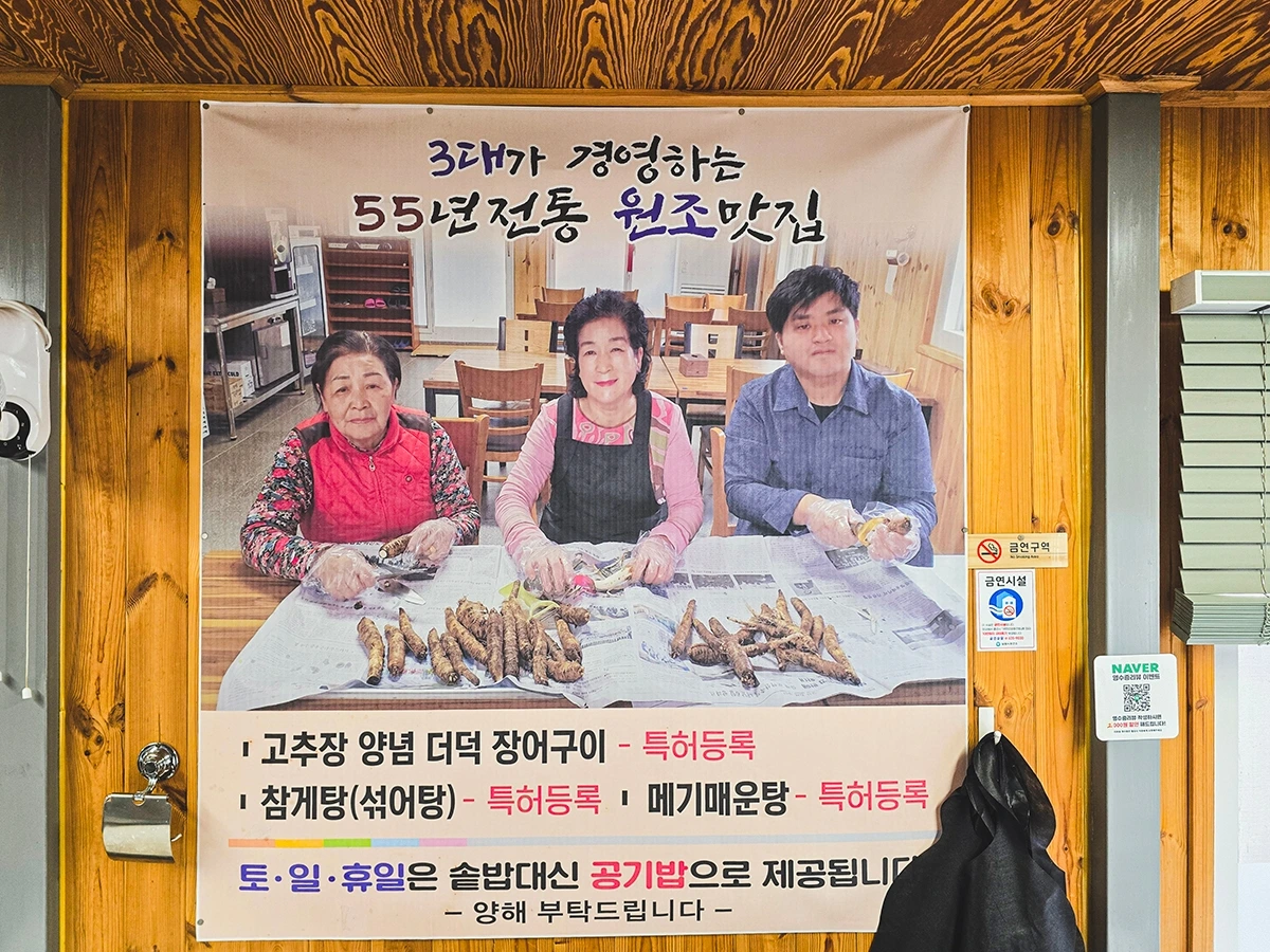 그런데 그 장어가 일반적으로 많이 먹는 소금구이나 양념구이기 아닌 고추장 더하기 더덕 더하기 장어구이라고 했다. 고추장으로 유명한 옆동네 순창에서 고추장 불고기는 먹어봤지만 고추장 장어구이는 난생 처음이라 그 맛이 어떨지 급호기심이 동해 한번 찾아가봤다.