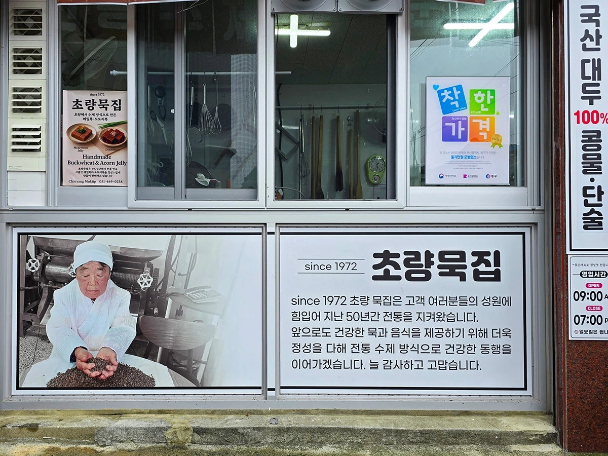 부산역 앞 초량전통시장 근처에 위치한 맛집 1972년초량묵집은 매일 오전 9시부터 저녁 7시까지 문을 연다. 단 매장 내 식사는 오전 11시부터 오후 3시30분까지만 가능하며, 나머지 영업시간 중엔 포장판매만 가능하다.