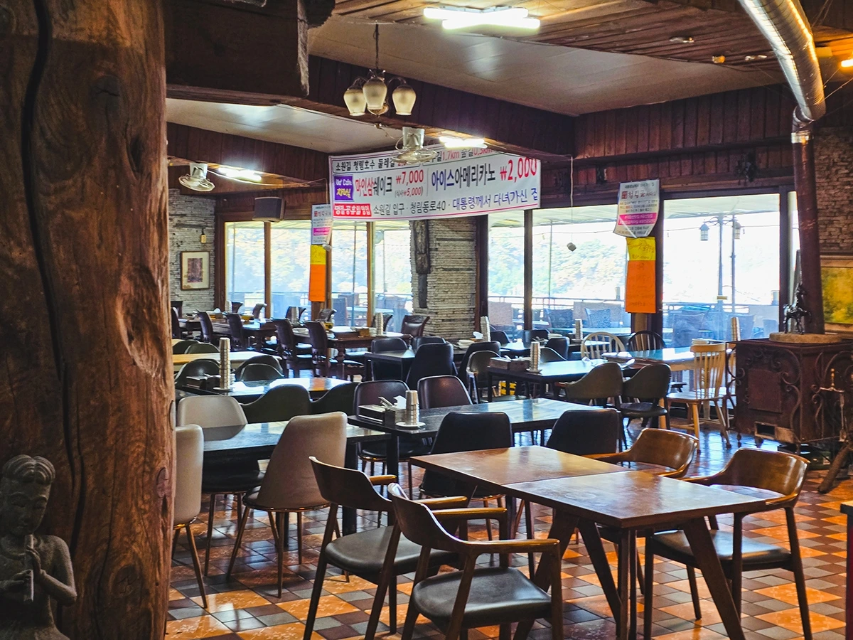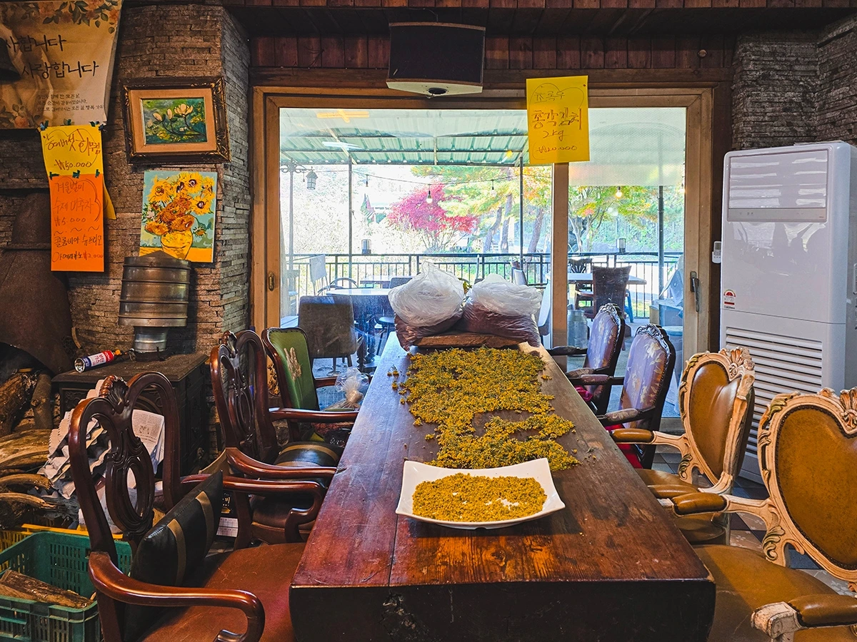 충남 금산 맛집 청림골차마실은 매일 오전 10시부터 오후 8시까지 영업을 한다. 연중무휴로 영업하는 것으로 알려져 있긴 하나 혹시 모르니까 방문 전 전화를 통해 영업시간 확인 겸 예약을 하는 걸 추천한다. 내가 방문했던 날은 단체손님 예약이 걸려 자리 세팅을 하느라 한바탕 난리가 벌어지기도 했었는데, 가을 단풍 여행명소로 유명한 가까운 대둔산 혹은 천년은행나무가 있는 보석사 여행길에 단체로 오는 손님들이 꽤 있는 듯했다.