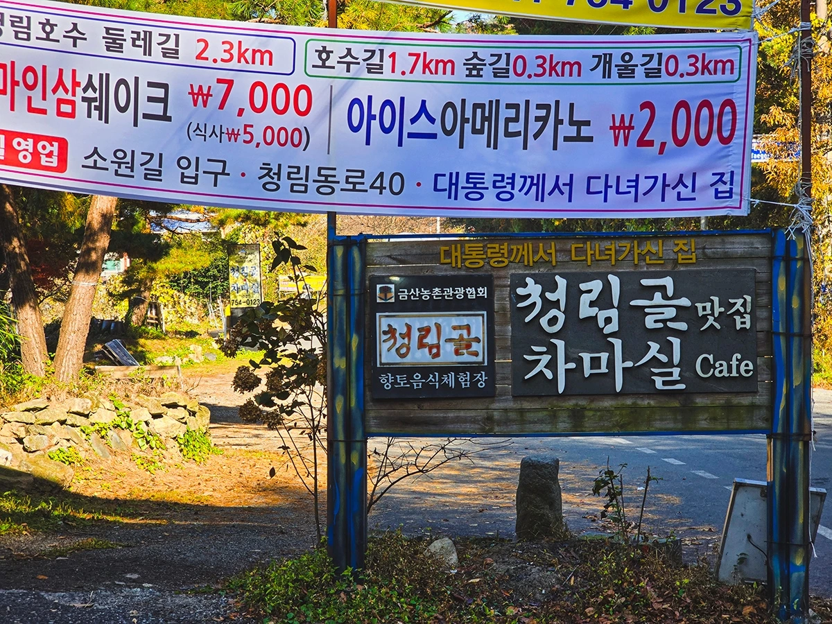 충남 금산군 진산면에 자리잡고 있는 38년 노포 청림골차마실은 호남의 금강산이라 불리는 대둔산 단풍여행 겸 천년은행나무가 있는 보석사 여행 계획을 세우던 중 근처 맛집을 찾다가 '대통령이 다녀간 집'이라는 소개문구가 눈길을 확 사로잡아 관심을 갖게 된 맛집이다. 예전보단 권위가 많이 떨어졌다 하더라도 대통령쯤 되는 분이 아무 음식점이나 막 가지는 않을 거라는 생각이 들어서다.