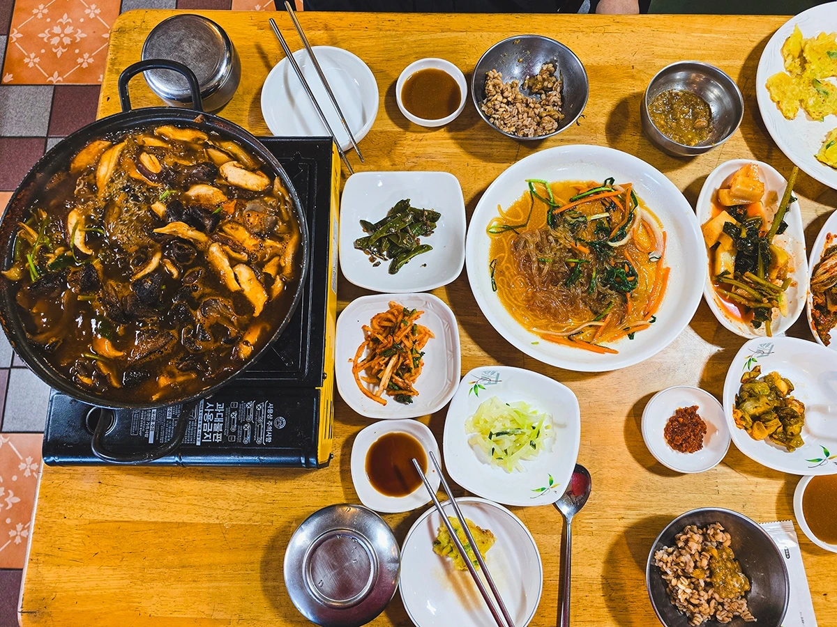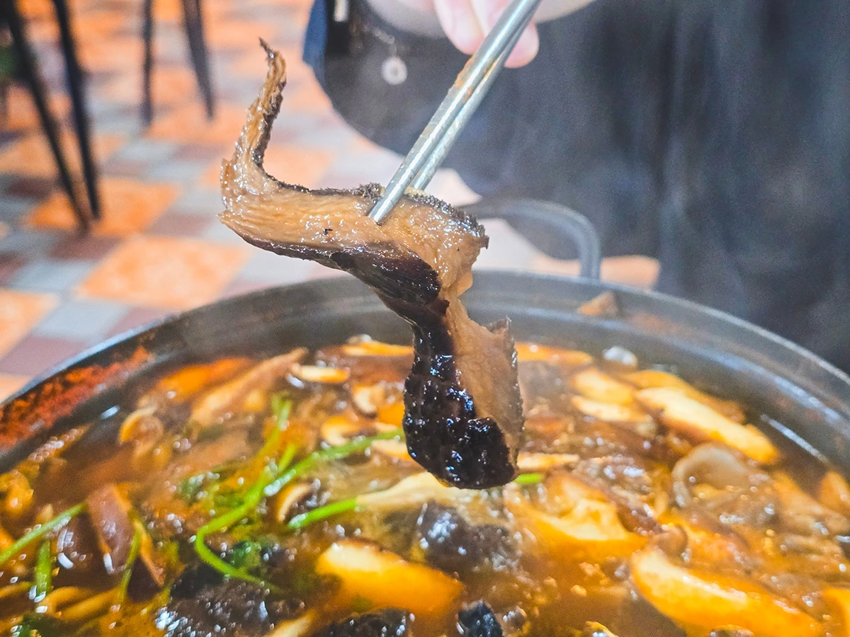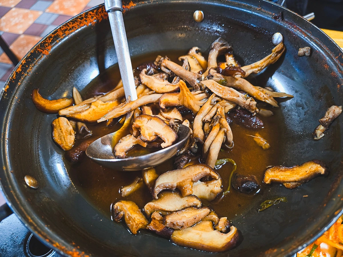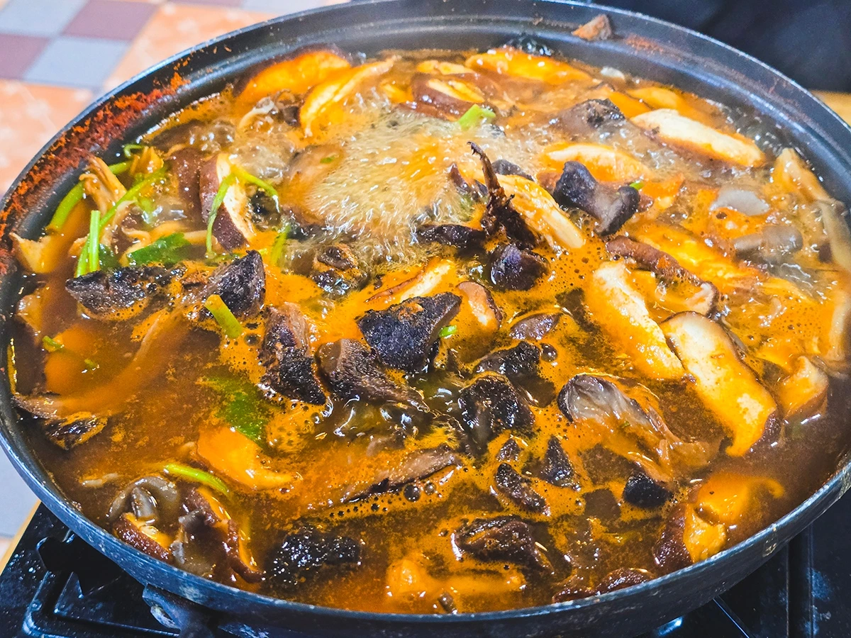 인터넷에서 이곳 충남 금산 청림골차마실을 검색하면 상호명 바로 아래 '향긋한 능이버섯전골의 진한 풍미'라는 부가설명이 붙어있는 것만 봐도 알 수 있듯이 이 집 시그니처 메뉴는 능이버섯전골. 손님에 따라서는 더덕구이정식이나 청국장정식이 더 맛있다고 말하는 사람들도 있긴 한데, 이날 내 방문목적이나 방향성 모두 능이 쪽이었던 만큼 시그니처 메뉴는 분명히, 확실히 능이버섯전골이라 콕 찍어 말하고 싶다. 청림골 사장님이 굳이 아니라고 하시면 어쩔 수 없지만서도.