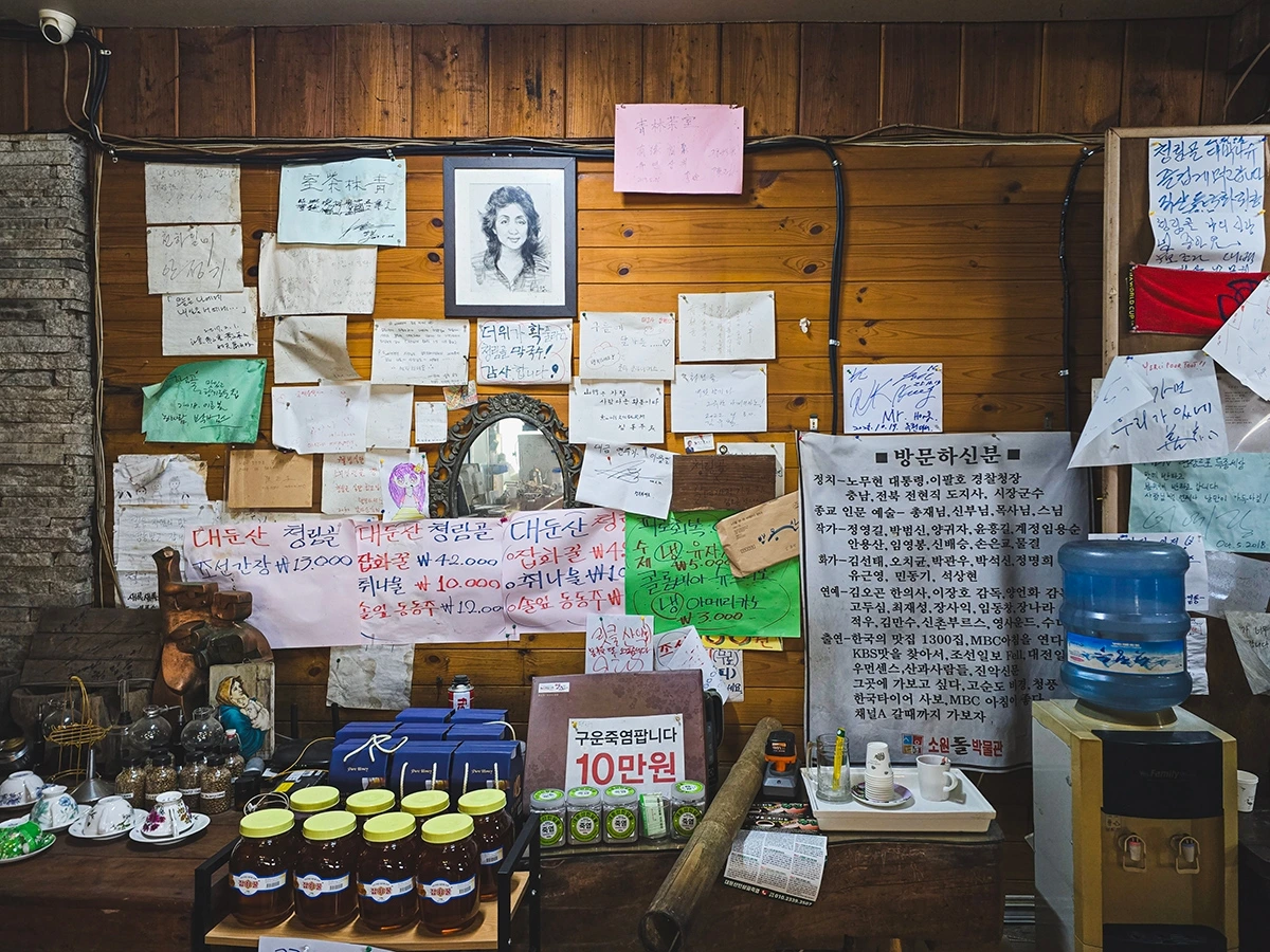 충남 금산 맛집 청림골차마실은 시그니처 메뉴인 능이버섯전골은 물론 사장님 손맛이 좋은 덕분에 직접 담으셨다는 초록무총각김치 등 밑반찬들이 두루두루 다 맛있는 맛집이기도 했지만, 개성 넘치고 감성적인 실내 인테리어로 구석구석을 예쁘게 장식해 구경하는 재미가 있는 분위기 맛집이기도 했다.
