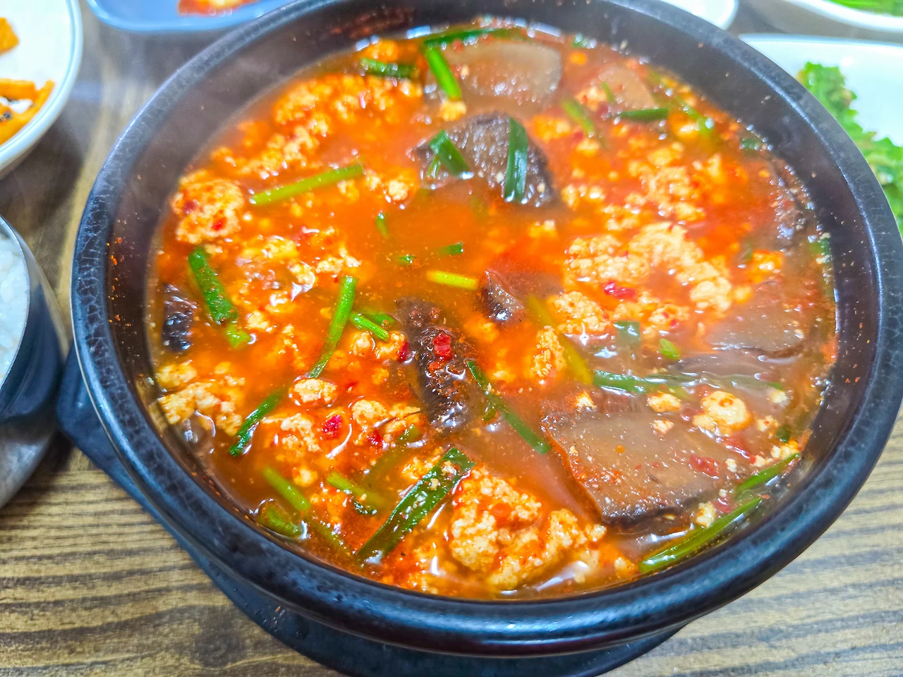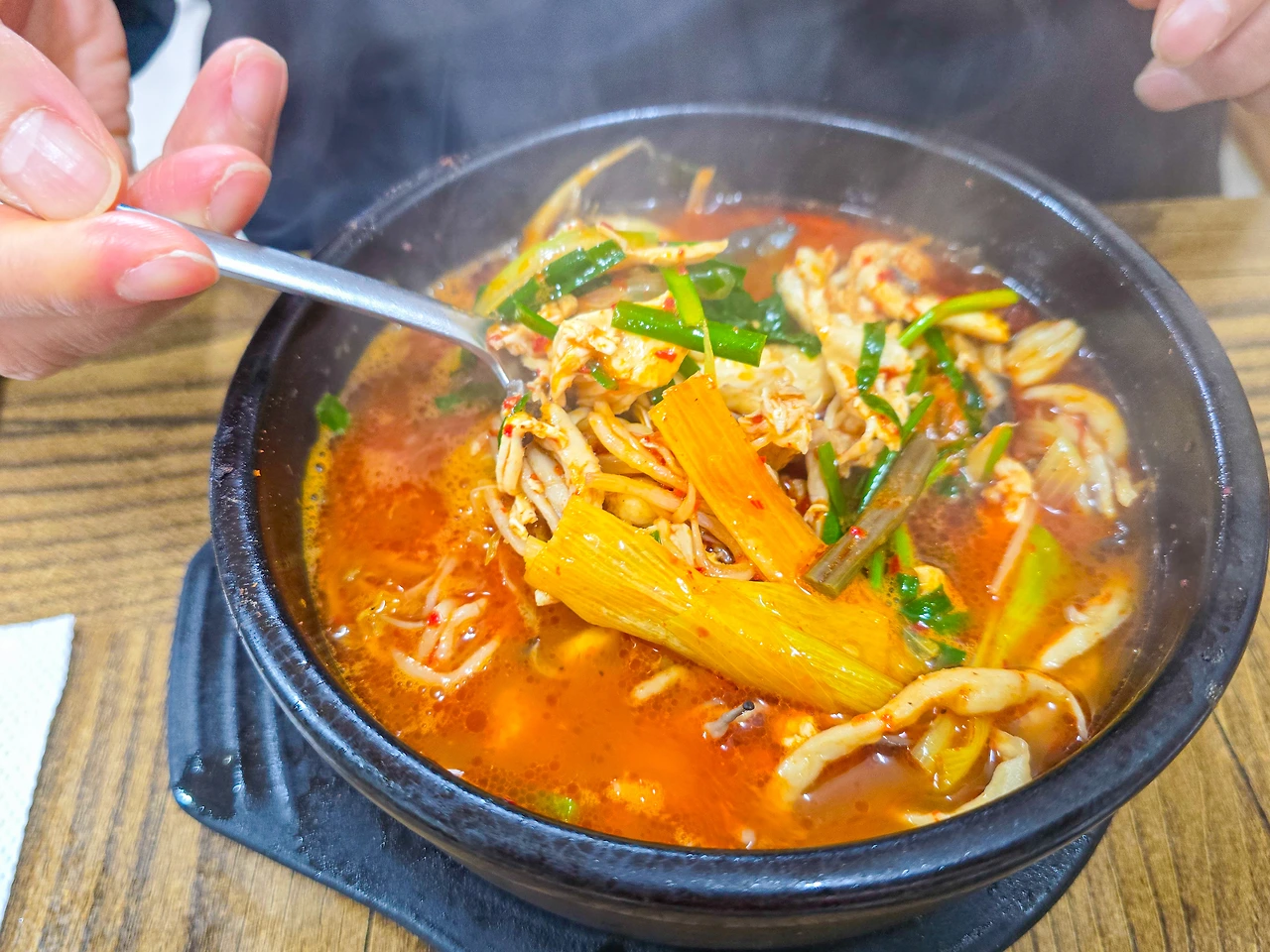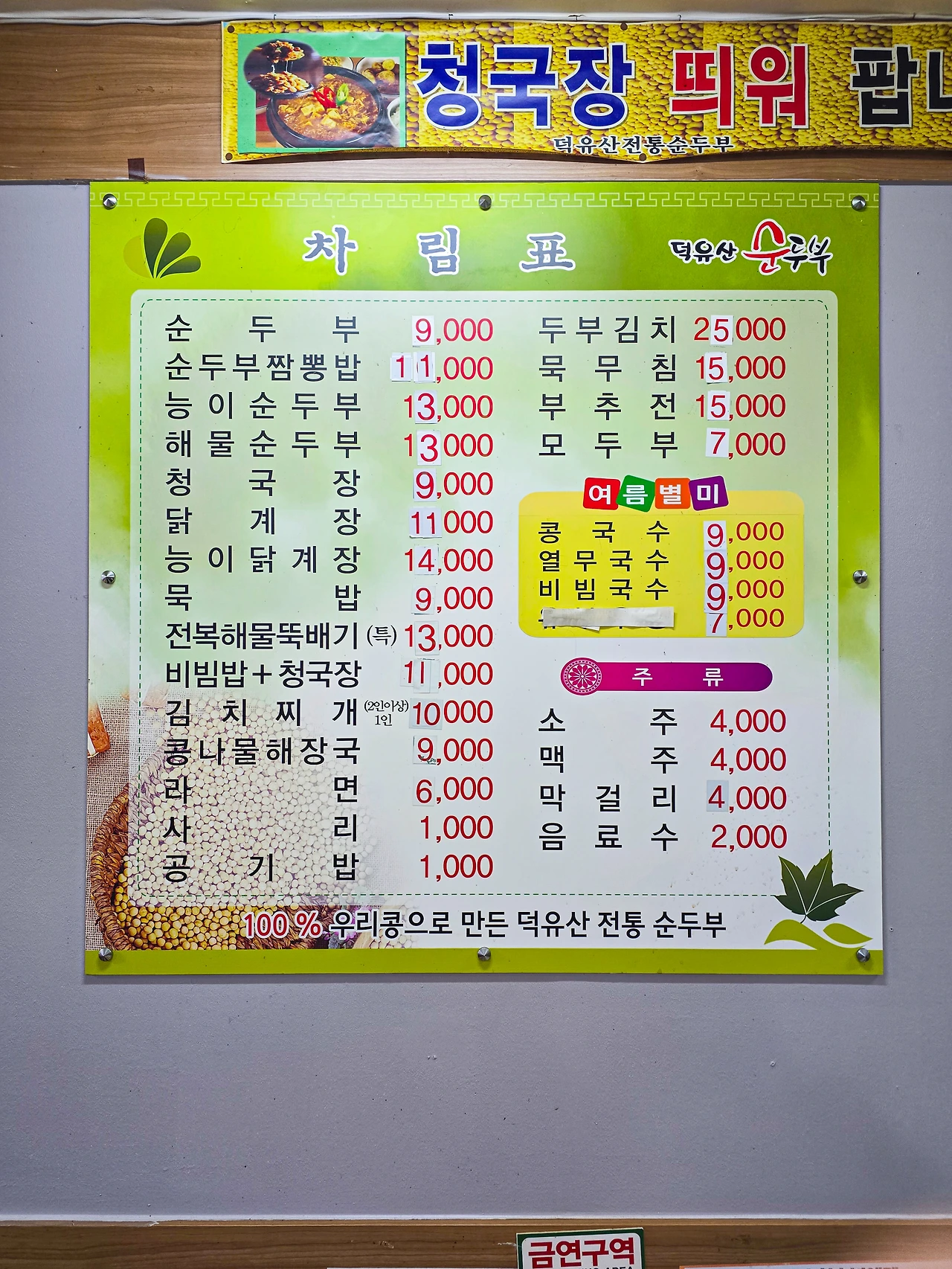 음식점 이름을 통해 이미 충분히 유추할 수 있는 것처럼 전북 무주 맛집 덕유산전통순두부의 시그니처 메뉴는 직접 만든 두부와 순두부를 주재료로 한 각종 두부 관련 요리들. 그 중 우리는 능이순두부와 능이닭개장을 각각 시켜먹었는데, 최근 한 능이전문점을 방문했던 길에 능이버섯이 만들어내는 진한 국물 매력에 흠뻑 빠졌기 때문.