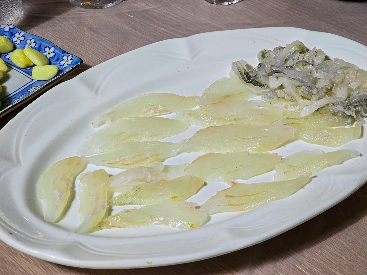 좀 더 구체적으로 예를 들자면 같은 광어라도 날개살 등 일반 횟집에선 좀처럼 접하기 힘든 특수부위들을 두루 맛볼 수 있고, 가시가 많아 먹기를 꺼려하는 사람이 많은 생선으로 유명한 전어조차도 자칭 '회칼질의 달인'이라는 이 집 사장님 손을 거치면 가시가 거의 느껴지지 않는 회로 거듭난다.