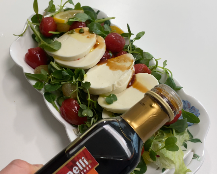 6) 발사믹 식초와 후추를 조금 뿌려 마무리한다.