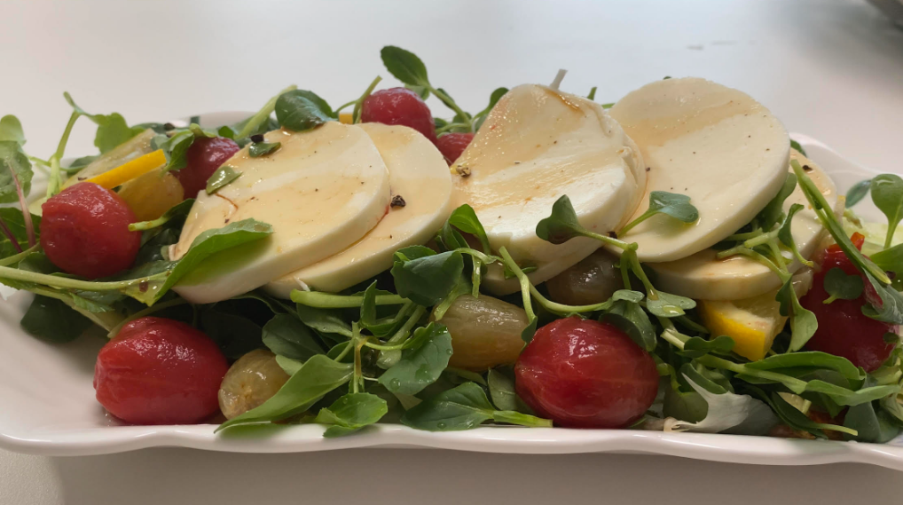 청포도 카프레제는 얇게 저민 토마토 대신, 절인 토마토와 청포도를 사용한다.