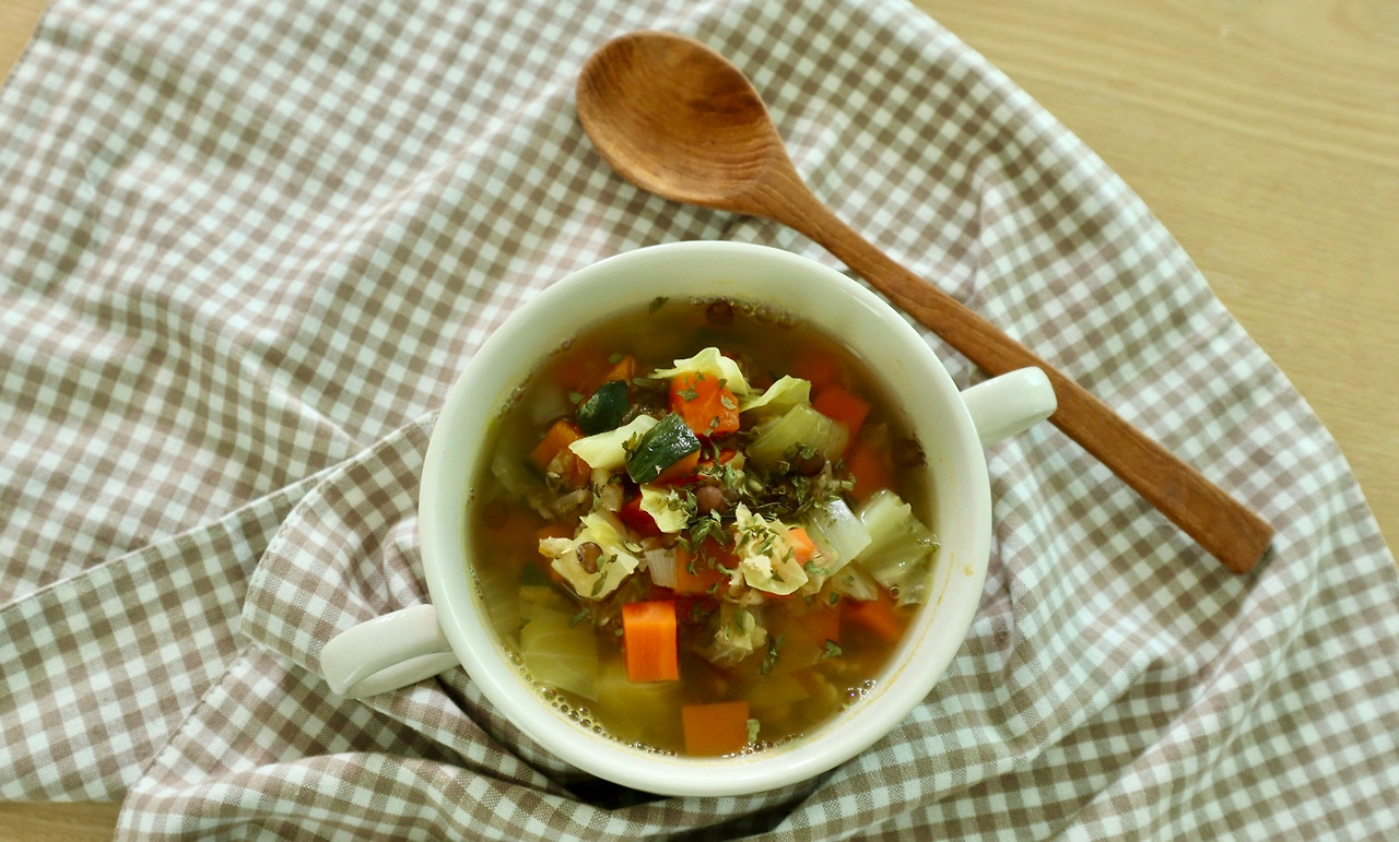 렌틸콩은 식물성 단백질·칼륨·엽산·식이섬유가 풍부하며, 세계 5대 건강식품으로 선정된 바 있는 슈퍼 푸드다. 소장에서는 잘 분해되거나 흡수되지 않는 저항 전분이 들어 있어, 포만감 대비 칼로리가 낮고 체중 조절에도 용이하다. 이번에 소개하는 렌틸콩 채소 수프 레시피는 준비한 재료를 한 냄비에 넣고 끓이기만 하면 되므로, 특별한 기술 없이도 바쁜 아침에 간단하게 조리하기 쉽다.