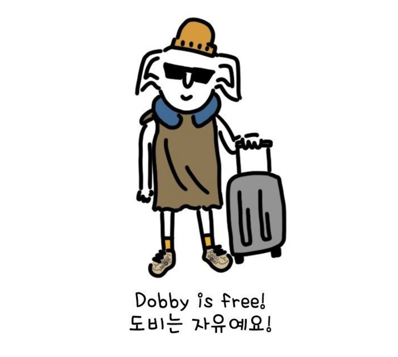 이러한 <해리포터 시리즈>의 맥락을 몰라도 도비의 뒤도 안 돌아보는 쿨한 작별인사는 수많은 퇴사자 또는 퇴사 희망자들에게 영감을 주고 있으니 정말 재미있다.