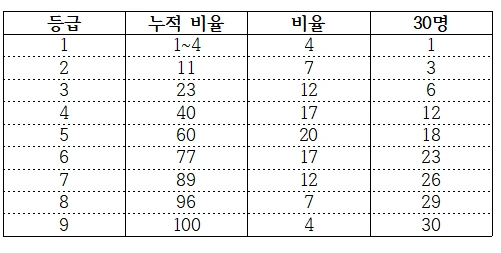 그런데 고등학교에서 30%면 3등급이예요. 3등급 중반정도 됩니다.