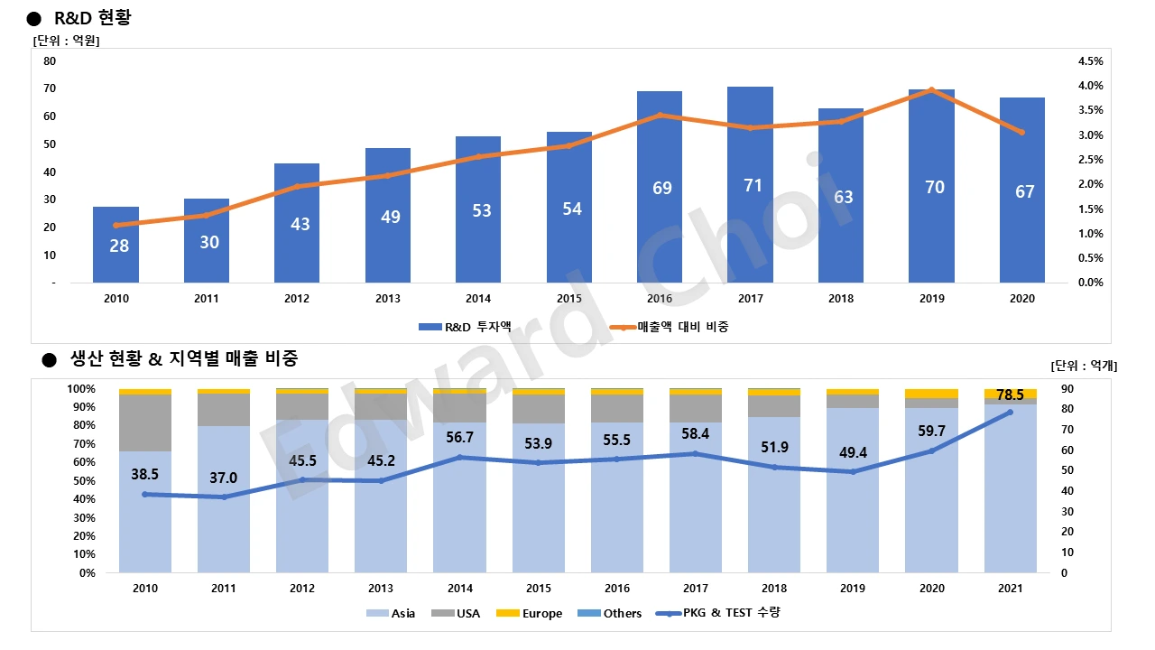 Lingsen의 2021년 기준 매출액은 3,171억 원으로 매출액의 99%를 반도체 패키징, 테스트에서 창출하고 있다. Application 비중을 보면 NOR-Flash/Nand-Flash이 33%로 가장 크며, Sensor IC가 27%로 그 뒤를 잇는다. Power IC 16%, RF-IC 10%, MCU 4%, 기타 10%로 Mid-Low end 반도체 패키징을 주로 담당하고 있다. 현재 고객들에게 제공 중인 패키징 Type은 QFN(Quad Flat Package), QFN(Quad Flat No-Lead Package), Small Outer Footprint Package( SOP), TSOP(Thin Small Outline Package), PLCC(Plastic Leaded Chip Carrier Package) 및 Discrete Components(Discrete) 등으로 Lead Frame 기반의 패키지가 대부분을 차지한다.