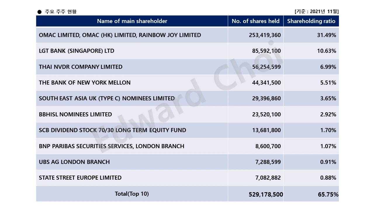종업원 : 8,083명(2021년 12월 말 기준-태국 한정)