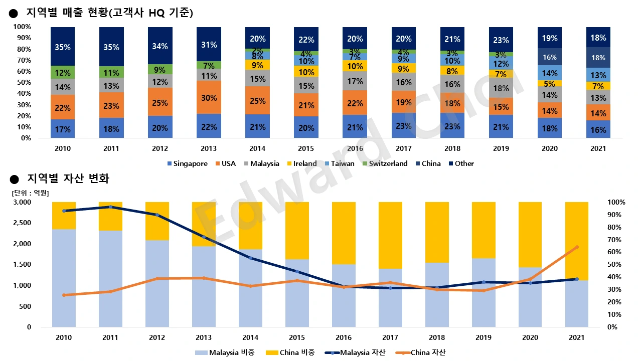 일례로 말레이시아 OSAT기업과 태국 OSAT업체 간 매출 총합의 격차는 1.1조 원이 넘으며, 말레이시아 기업들의 매출액 총합은 태국 기업들보다 4배가 많다. 2022년 들어 OSAT업체들의 주식가치가 폭락하면서 현재 시점과 괴리가 있지만 2021년 12월 말 양국 OSAT업체들 간의 시가 총액 차이는 6.3조 원이다. 분명 말레이시아의 OSAT 업체들이 태국의 기업보다 높은 가치를 인정받고 있는 것은 사실이다. 하지만 이들 역시 패키징 기술에 대한 한계가 있으며 일부 업체의 경우 특정 고객사에 편중된 사업 포트폴리오로 인해 고민이 많다. 말레이시아의 주요 OSAT업체들의 성장과정을 통해 말레이시아 반도체 산업을 자세히 들여다 보고자 한다.