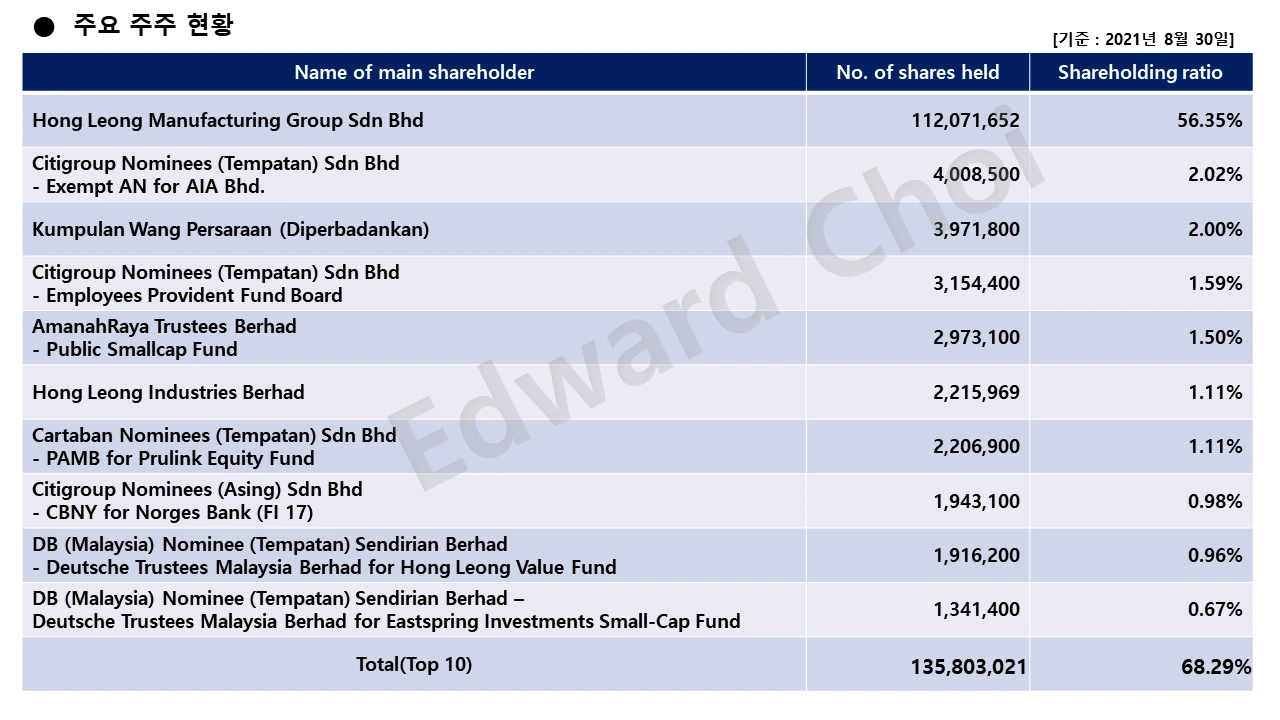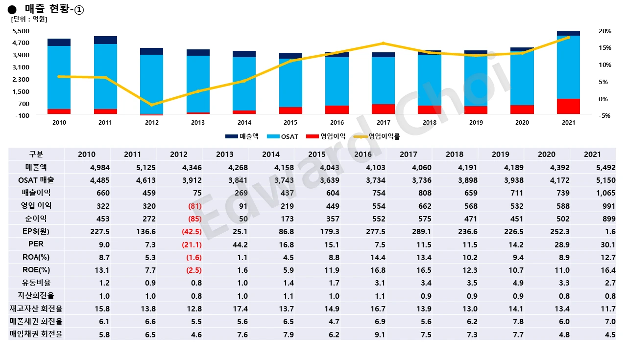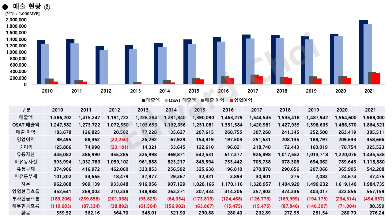지난 펜더믹 기간 동안 Carsem 역시 반도체 호황에 따른 패키징 물량의 증가로 큰 폭의 매출과 수익 증대를 이뤄냈다. 넓은 고객사 Pool과 다양한 사업군, 특히 자동차용 반도체의 수요 증가가 매출액 증가에 크게 영향을 미쳤다. 하지만 Lead Frame 위주의 패키징과 빈약한 연구개발 인프라의 한계 그리고 말레이시아 국적의 OSAT인 UNISEM과 Inar 경쟁까지 Carsem에게도 극복해야 할 과제가 산적해 있다.