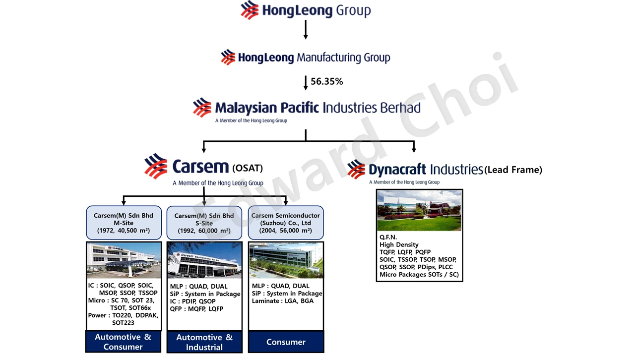 MPI(Malaysian Pacific Industries Berhad)는 말레이시아 대표 재벌인 HongLeong 그룹에 속한 기업으로 산하에 OSAT업체인 Carsem과 Lead Frame 생산업체인 Dynacraft(이후 "DCI")를 두고 있다. MPI의 모회사인 HongLeong 그룹은 1963년 말레이시아가 영국으로부터 독립한 해에 설립되었다. HongLeong 그룹은 설립 초기 금융업을 기반으로 자금을 조달하여 말레이시아에 있는 핵심 기업들을 인수 합병을 통해 급격한 성장을 이뤄냈다. 현재는 금융, 제조, 레저, 부동산 등 다양한 분야에서 사업을 영위하고 있으며 말레이시아, 영국, 싱가포르, 홍콩에 총 14개 자회사가 상장되어 있다. MPI는 HongLeong 그룹의 제조 부문에 속해 있으며 반도체 패키징과 관련된 첨단산업 분야를 담당하고 있다.