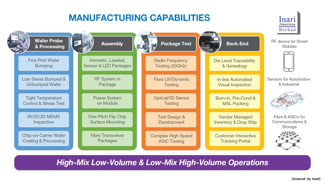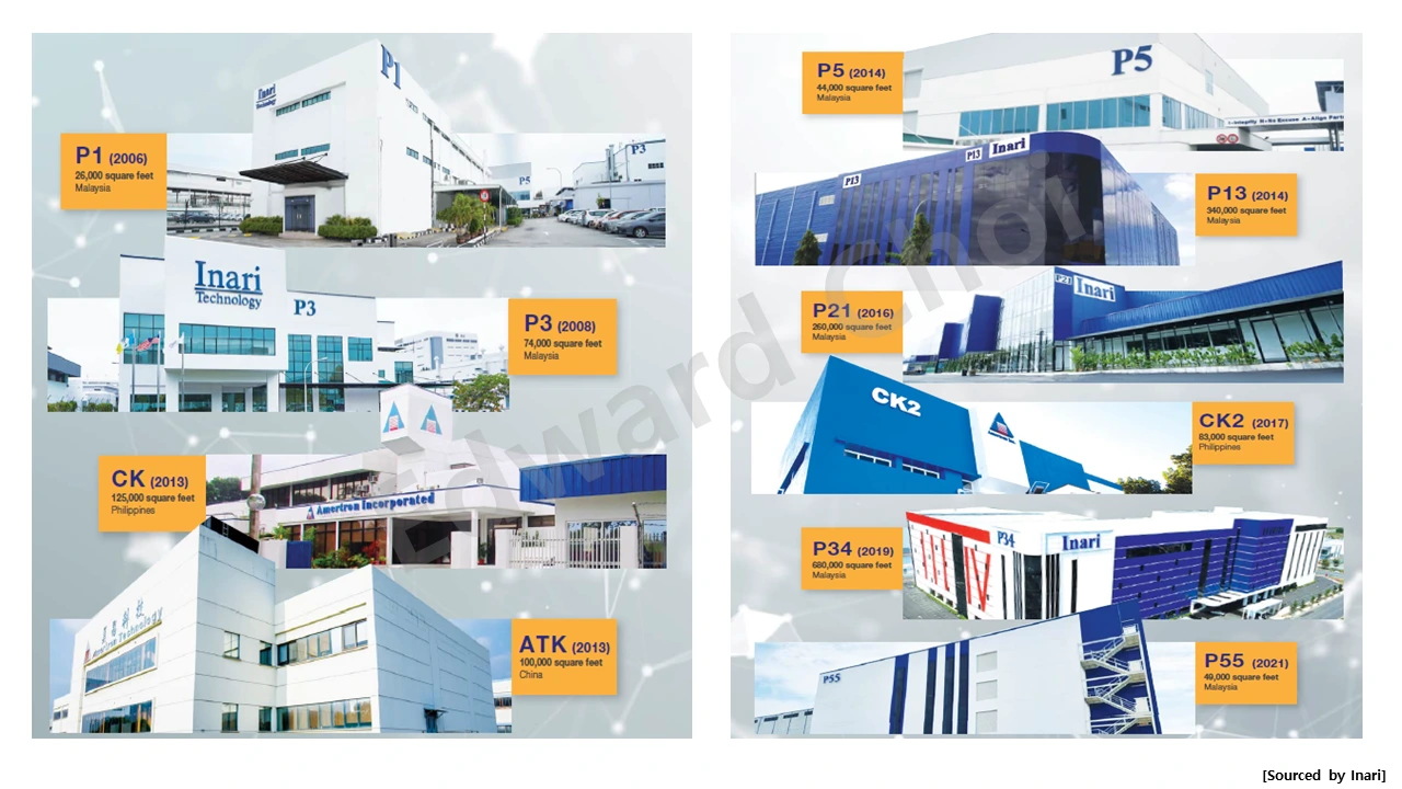 이제 Broadcom의 연혁을 기반으로 Inari의 성장 과정을 짚어보자. 2006년 Inari Technology Sdn Bhd는 말레이시아 페낭에서 SMT 조립, PCBA 및 Box-Build 서비스를 위한 첫 번째 공장(P1)의 운영을 시작했다. 같은 해, Inari는 Avago의 주요 OEM업체로 지정됐다. 설립된 지 일 년이 채 되지 않은 업체였지만 Inari의 경영진은 Avago(舊Agilent) 말레이시아와의 인맥을 십분 활용하여 Avago의 OEM업체로 지정될 수 있었다. Avago의 OEM업체로 지정된 이후, Inari의 사업 방향과 신규 투자는 Avago의 반도체 위탁 조립을 최적화하는데 집중되었다.