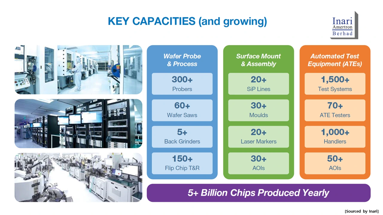 말레이시아의 증권사에서 발행한 Inari의 기업 분석 리포트를 보면 Inari에 대해 할애되는 부분보다 Broadcom의 RF 필터에 대한 전망 그리고 OSARM의 LED 사업에 대한 내용이 주를 이룬다. 다소 극단적이지만 Broadcom과 OSARM의 기술적 해자가 붕괴되지 않는 이상, Inari의 성장에는 큰 문제가 없어 보인다. 물론 2022년 들어 직면한 반도체 다운 사이클로 인해 매출액과 공장 가동률이 감소하고 있지만 반도체 사이클이 반등할 시기에는 가장 먼저 수혜를 받을 것으로 생각된다. 그래서 향후 증가할 것으로 예상되는 Broadcom의 패키징 물량을 대응하기 위해 Inari는 생산 시설 확충과 생산 능력 고도화를 위해 추가 투자를 단행하고 있다.