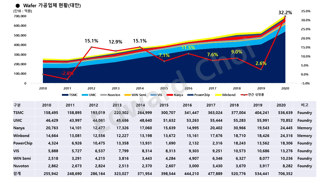 대만 OSAT업체들에 대해 살펴보기 전에 현재 대만 반도체 산업의 중심축인 Foundry(Wafer 가공 위탁업) 산업과 한때 대만 반도체 산업의 미래였던 메모리 반도체 업체로부터 이야기를 시작하고자 한다.