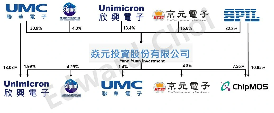 위에 있는 도표를 통해 대만의 대표 Foundry 업체인 TSMC, UMC와 주요 OSAT 간 긴밀한 협업 관계를 알 수 있다. 팹리스에서 TSMC를 통해 Wafer를 가공하는 경우, 팹리스와 계약되어 있는 별도의 OSAT가 없는 한 ASE가 패키징을 위한 최우선 업체로 고려된다. 이와 대척점에 있는 "Yann Yuan Investment"는 본래 SPIL에 대한 ASE의 적대적 M&A를 방어하기 위해 설립되었다. UMC(Foundry), SPIL(패키징 & 테스트), KYEC(테스트), Sigurd(테스트 & Bumping), Unimicron(기판 생산업체)가 상호 출자하여 설립한 합작회사로서 외부세력으로부터 "UMC 연합"을 지킴과 동시에 협업을 공고히 하려는 목적을 띄고 있다. 합작회사를 설립하기 전에도 본래 이들 업체들은 親UMC 업체들로 불렸으며, UMC에서 가공되는 Wafer의 패키징시 최우선 고려 대상이었다. 이처럼 대만의 Foundry 업체와 OSAT는 협업 라인 구축을 통해 시너지를 발휘하고 예상치 못한 위협에 대해 공동으로 대처하고 있다.