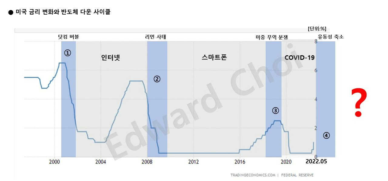현재 우리가 마주하고 있는 반도체 산업의 지속적인 성장세는 단시간 내에 구축된 것이 아니다. 코로나로 인한 팬더믹이 시작되고 나서 근 2년에 걸친 시간 동안 모든 반도체 산업 구성원 전체가 합심한 끝에 만들어낸 결과이다. 이 시점에서 경기침체와 재고 과다로 인해 시장의 분위기가 급변할 경우, 단시간 내 반도체 산업계가 침체에 빠질 수 있다. 그동안 악화 일로에 있는 상황이 2분기 중 재고 자산 소진을 통해 개선되기를 기대했다. 하지만 우크라이나-러시아 전쟁이 장기화되고, 중국의 주요 도시가 봉쇄되면서 타이밍을 놓치고 말았다. 높은 물가를 잡기 위한 미국 연준의 유동성 축소와 금리인상이 본격적으로 시작되면서 창고 가득히 쌓인 재고에 대한 부담은 시간이 갈수록 커지고 있다. 이전 글 말미에 현상황을 타개하기 위해서는 급격한 경기 회복이 필요하다고 언급했는데 지금 당장은 상황을 반전시킬 묘안이 없어 보인다.