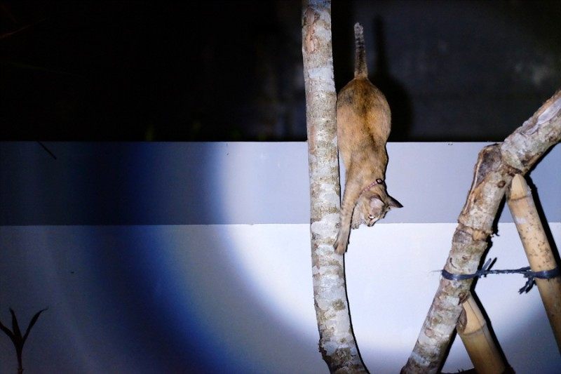 집 안에는 많은 높이가 각각인 나무, 흙과 돌이 있고 은폐, 엄폐가 가능한 구석구석이 많아 전보다 작기는 해도 녀석에게는 충분히 행복한 공간인 것 같다.단독주택의 정원일 뿐이지만 새도 몇 종류가 있고 도마뱀도 서너 종에 개구리, 두꺼비도 있으니 나름 심심치 않기도 할 것이다.