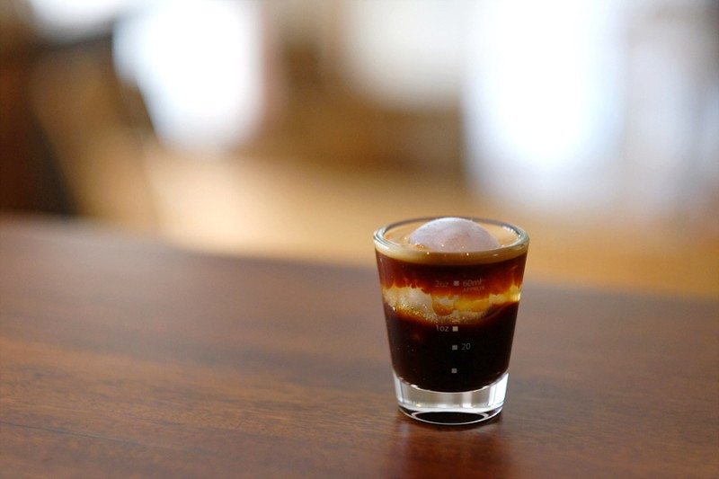 에스프레소에 물을 타는 것을 싫어하지만 유일하게 긍정하는 것이 바로 에스프레소 잔 가득 차는 얼음 덩어리 하나를 넣어 마시는 에스프레소 온 더 락이다. 자잘한 얼음은 넣으면 바로 녹아 풍미가 사라지니 안 된다. 큰 얼음 하나를 넣으면 크레마가 바로 냉동되듯 딱 제자리에서 두툼하게 그대로 있는다. 에스프레소의 뜨거움이 사라지기 전에, 얼음이 녹기 전에 서너 번에 나눠 찬 얼음과 뜨거운 에스프레소를 느끼며 마신다. 오직 집에서만 마시는데 딱 한 번, 역시 외국인 모 카페에서 네모난 유리 잔에 사각 얼음이 몇 조각 들어간 에스프레소 온 더 락스 Espresso on the rocks 를 마셔본 적이 있다. 커피는 역시 좋았는데 개인적으로는 얼음은 잔에 꽉 차는 큰 거 하나가 제격이다. 이 때 잔은 각이 없는 투명한 에스프레소 잔이어야 한다.
