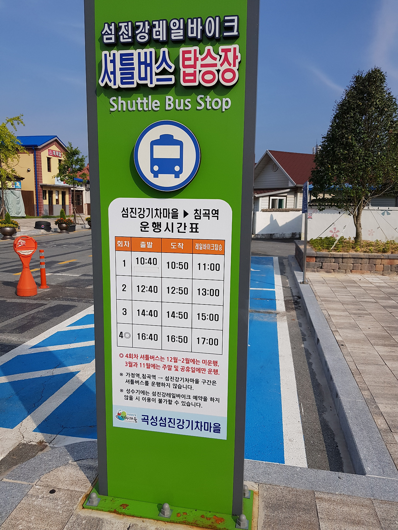 내가 아는 레일바이크라 해봐야 놀이공원에서 어렸을 때 가끔 탔던 레일바이크가 전부다. 어지간한 놀이기구는 다 타보고나서 '힘들어죽겠는데 저거나 타 볼까?'해서 쉴려고 레일바이크를 타곤 했다. 섬진강기차마을의 레일바이크도 비슷하겠거니 하는 굉장히 안일한 마음으로 탈 생각이었다. 그저 중학교 때 교과서에서 읽었던 '섬진강 아이들'의 배경이 된 섬진강을 옆에 두고 느긋하게 해질녘 바람을 맞으며 레일바이크를 타는 낭만적인 그림만을 상상하며 여유롭게 레일바이크가 출발하는 침곡역 가는 셔틀버스에 올라탔다.