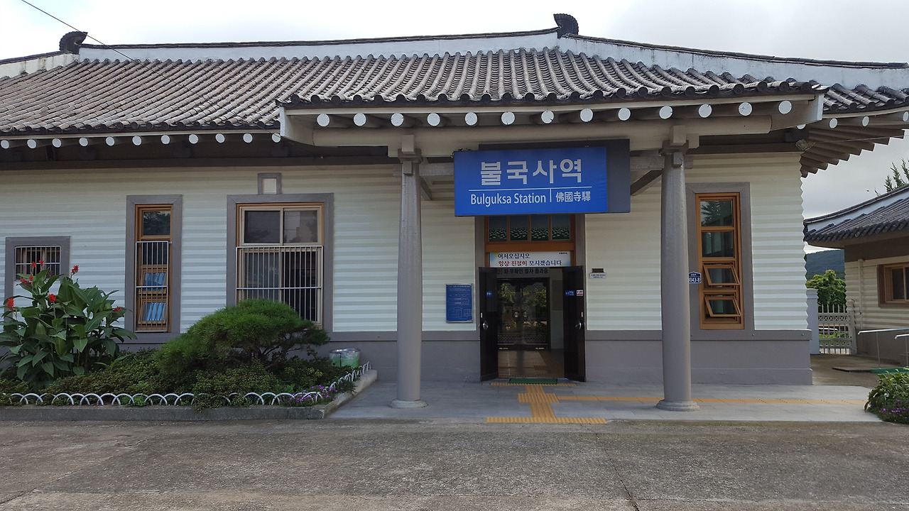역사 지구를 한참 돌아다니다 보니 오후 3시가 넘어간다. 여기까지 왔는데 불국사는 들렀다 와야 하지 않겠나 싶은 생각에 부랴부랴 경주역에서 불국사역 가는 기차에 올라탔다. 기차로 한 정거장 거리에 있는 불국사역은 정말 간이역처럼 작은 역이었다. 불국사를 오가는 사람들을 제외하면 사람의 발길이 잘 닿지 않는 곳이여서 그런지, 불국사역 주변은 휑한 구석이 있었다. 4차선 도로와 작은 편의점을 제외하면 역 앞에는 정말 아무것도 없었다.