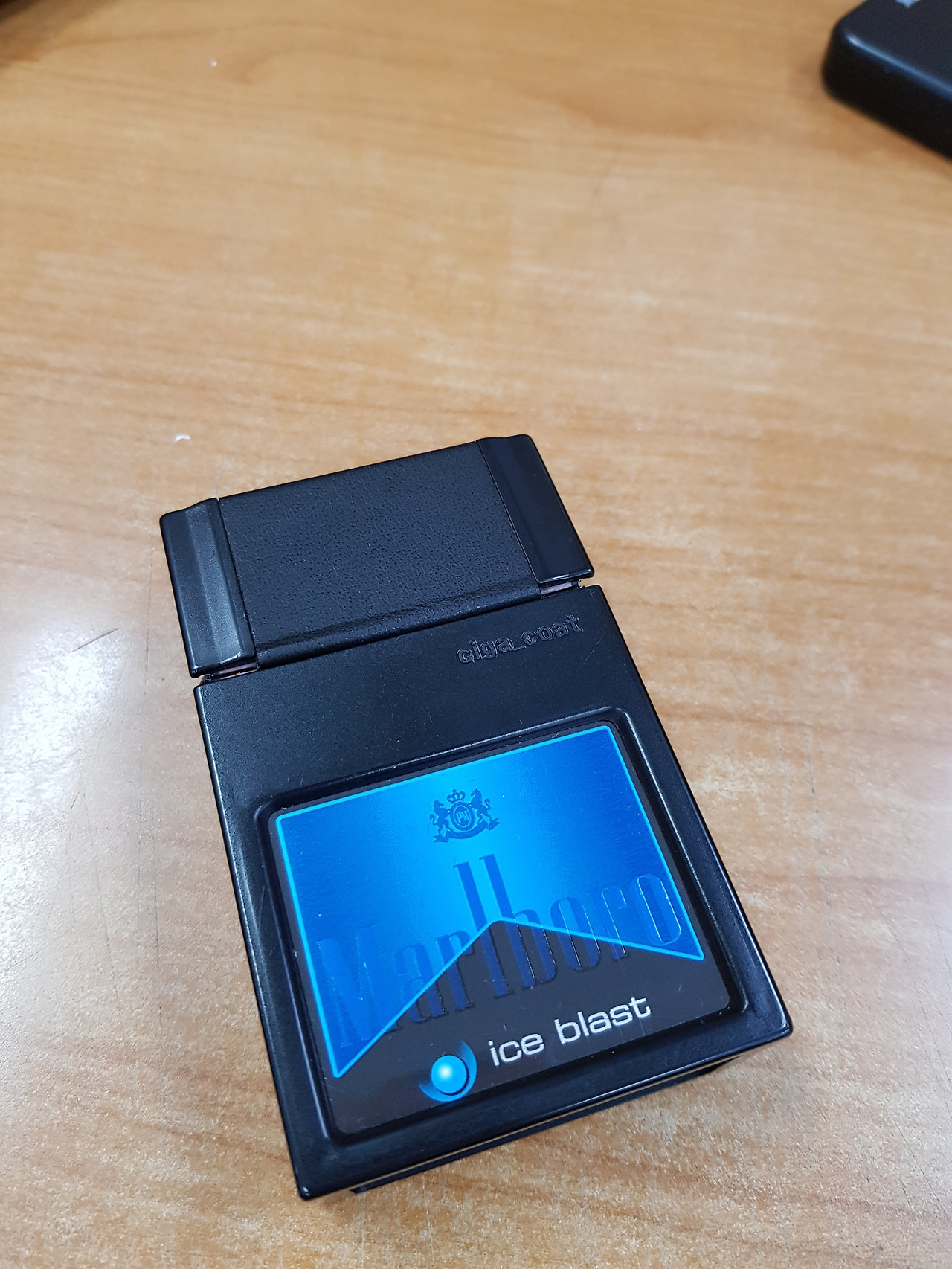 잠깐 신분증을 쓱 훑어보더니, 비닐이 칭칭 둘러싸인 각진 담뱃갑을 내밀었다.