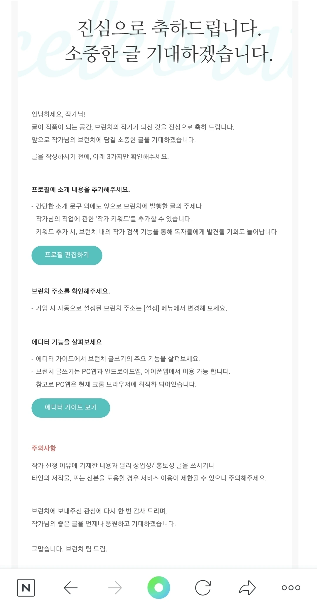 다시 다듬어서 지원서 제출하고 3일 만에 붙은 케이스다. 아무튼 브런치 작가에 도전하시는 모든 분들 다 합격해서 좋은 글 쓸 수 있으셨으면 좋겠다. 화이팅.