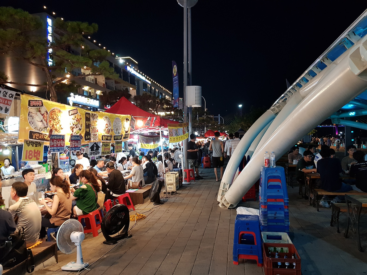 여수에서 제일 사람들이 북적북적하고, 인기가 많은 곳을 하나 뽑으라 하면 낭만포차 거리일 것이다. 밤이면 바다를 끼고있는 포장마차가 사람들로 가득 차고, 거리에는 기타 하나 들고 길거리 버스킹을 하는 사람과 그 관객들로 북적거린다. 사실 낭만포차 거리에서 뭔가 거창한 걸 하겠다는 생각보다는 그냥 낭만포차 거리의 특유의 분위기를 느끼고 싶었다. 바다 옆에 죽 늘어서 있는 포장마차와 그곳에서 나는 맛있는 음식 냄새를 맡으며 북적북적하는 사람들 틈에 끼어 정처 없이 걷는, 여수에서만 느낄 수 있는 말 그대로 낭만적인 분위기를 느끼고 싶었다.