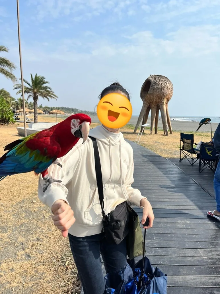나는 이 갑작스러운 상황에 어리둥절했지만, 그래도 아저씨 덕분에 앵무새와 멋진 기념사진을 남길 수 있었다.
