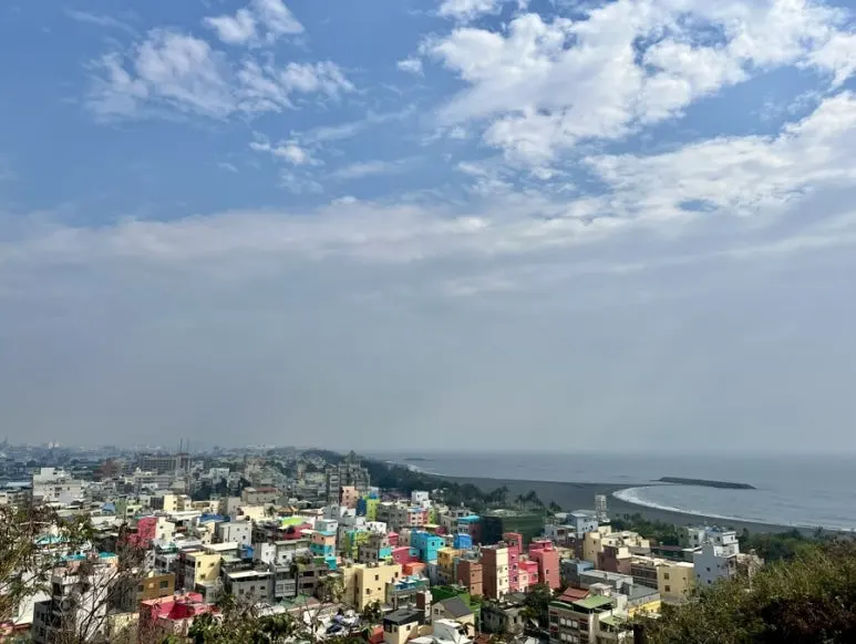 반대편으로 고개를 돌리니 알록달록한 치진섬의 건물들과 검은 모래가 인상적인 해수욕장이 한눈에 들어왔다. 시야를 가리지 않은 낮은 층수의 건물들이 보기 좋았다. 모난 구석 없이, 누구 하나 눈에 띄지 않게, 고만고만한 층수의 건물들이 인상적이었다.