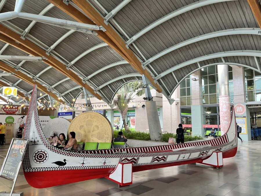 역 밖으로 나오니 입구에 란위섬 소수민족의 전통 배가 놓여 있었다.
