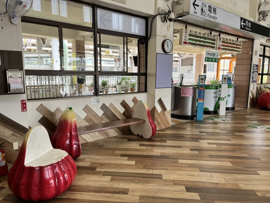 나중에 알게 된 핑동의 친구가 말해준 바에 따르면, 팡랴오는 과일과 생선으로 무척 유명한 지역이라고 한다. 특히 이곳은 망고와 롄우가 대표적인 특산품이라고 한다. 그래서인지 역 안에 있는 의자들이 모두 왁스애플 모양이었다.